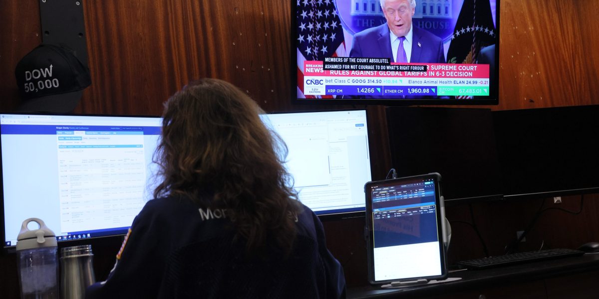 Wall Street kept calm Friday after the Supreme Court struck down President Trump's sweeping tariffs, which had triggered panic in financial markets when announced last year, and stocks ticked higher. The Dow rose 230.81, or 0.5%, to 49,625.97, finishing the w…