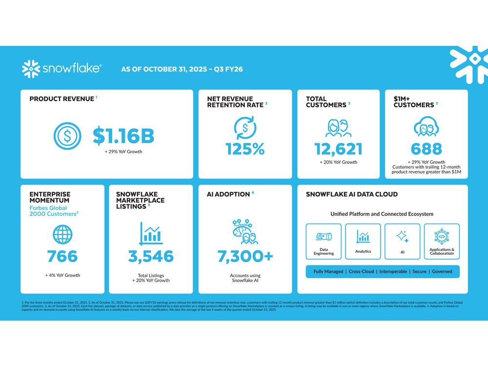 Product revenue of $1.16 billion in the third quarter, representing 29% year-over-year growth Net revenue retention rate of 125% 688 customers with trailing 12-month product revenue greater than $1 million 766 Forbes Global 2000 customers Remaining performanc…
