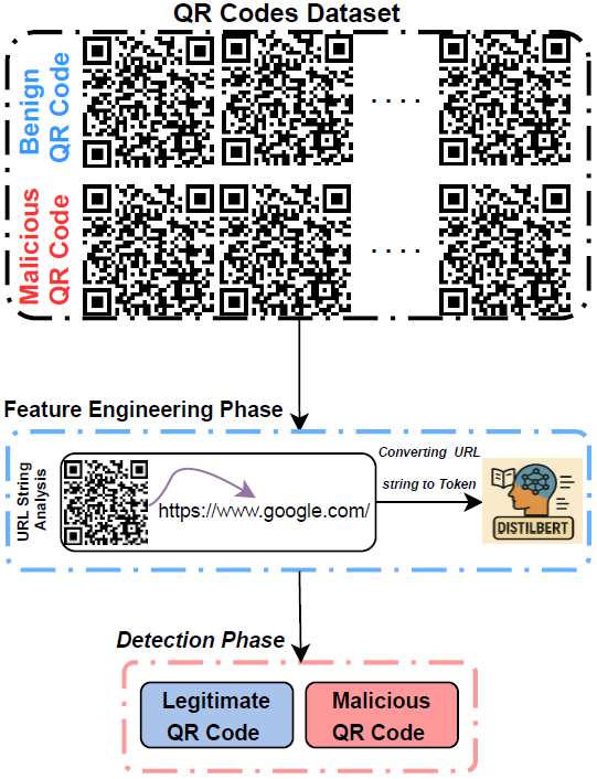 Classification: Apply lightweight transformer-based models to determine whether the decoded QR code or its associated URL is benign or malicious.